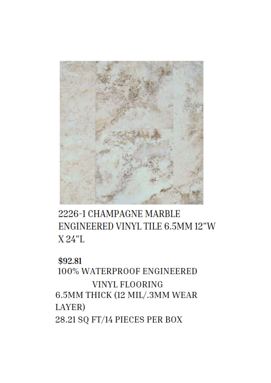 Champagne Marble Engineered Vinyl Tile