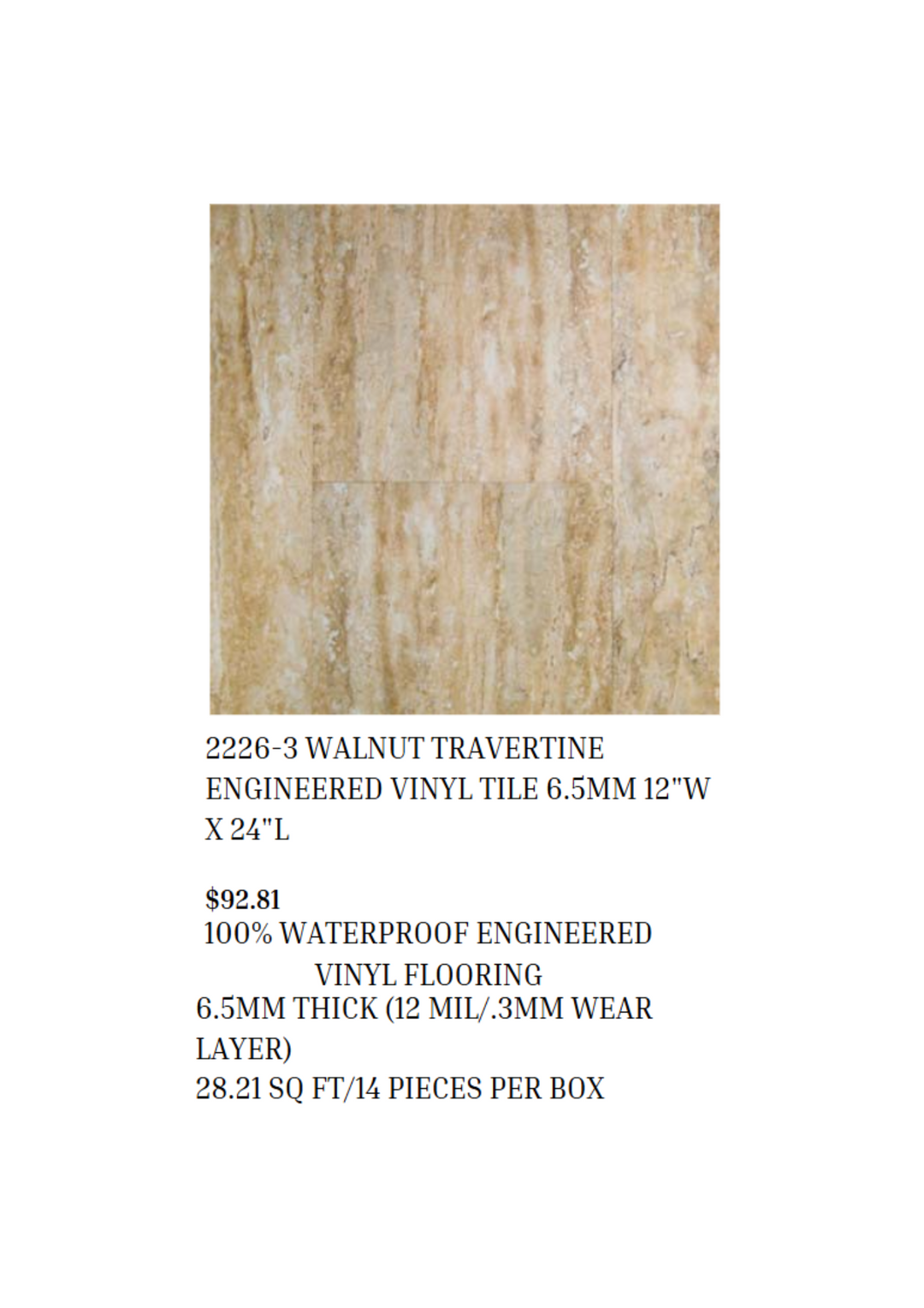 Walnut Travertine Engineered Vinyl Tile